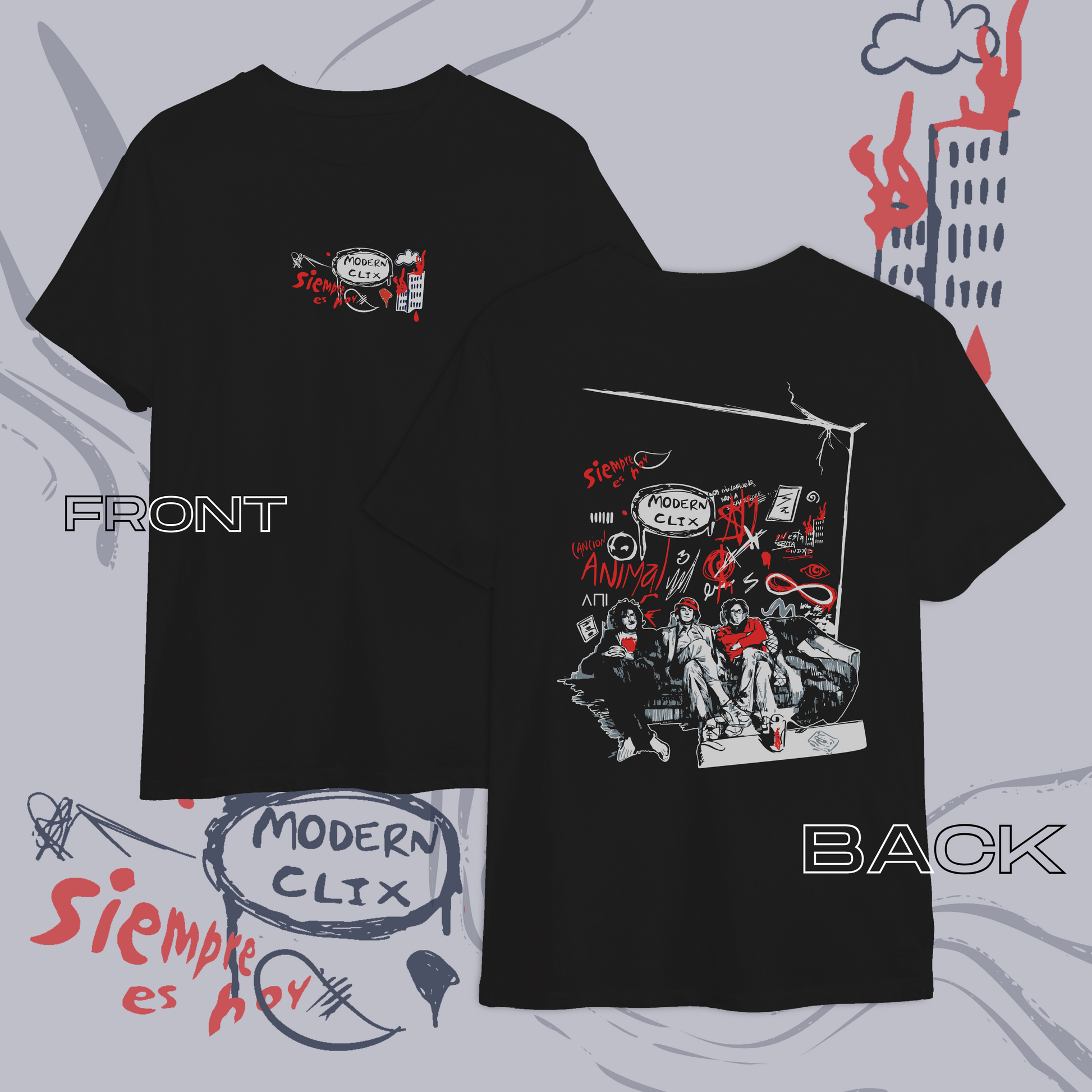 Remera con diseño único y original de Charly García, Gustavo Cerati y Fito Páez.